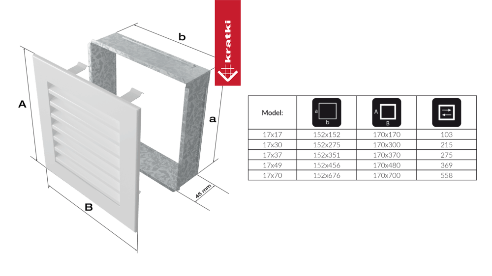Kratka wentylacyjna kominkowa FRESH 17x17 czarno-srebrna
