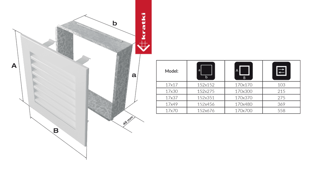 Kratka wentylacyjna kominkowa FRESH 17x30 miedziana