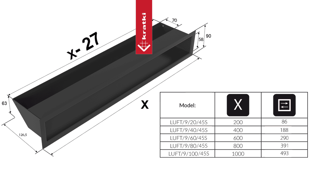 Kratka wentylacyjna kominkowa LUFT 9x40 biała