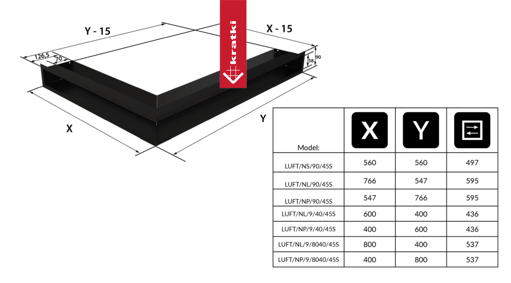 Kratka wentylacyjna kominkowa LUFT narożny 56x56x9 szlifowana