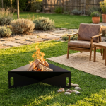Warto zwrócić uwagę na design paleniska. Jego nowoczesny kształt w formie pyramidy doskonale wpisuje się w trendy współczesnej architektury ogrodowej. Oprócz praktycznych zastosowań, palenisko stanowi atrakcyjny element dekoracyjny, który wzbogaca przestrzeń, w której się znajduje. Dzięki unikalnemu wyglądowi, z pewnością przyciągnie uwagę gości.