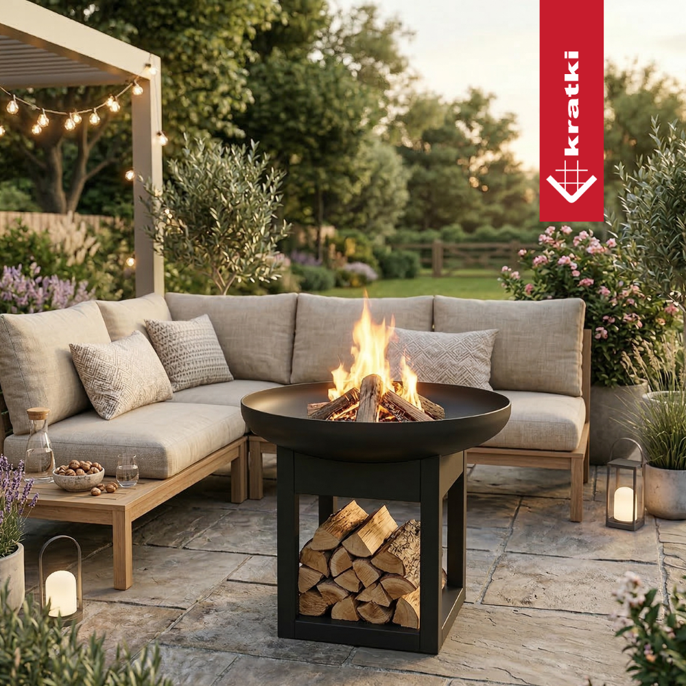 Palenisko ogrodowe CRATER 600 KRATKI to stalowe solidne miejsce na ognisko, tam gdzie chcesz. Czarna stal malowana proszkowo pasuje do każdego ogrodu, lub na taras. Palenisko posiada miejsce na drewno.