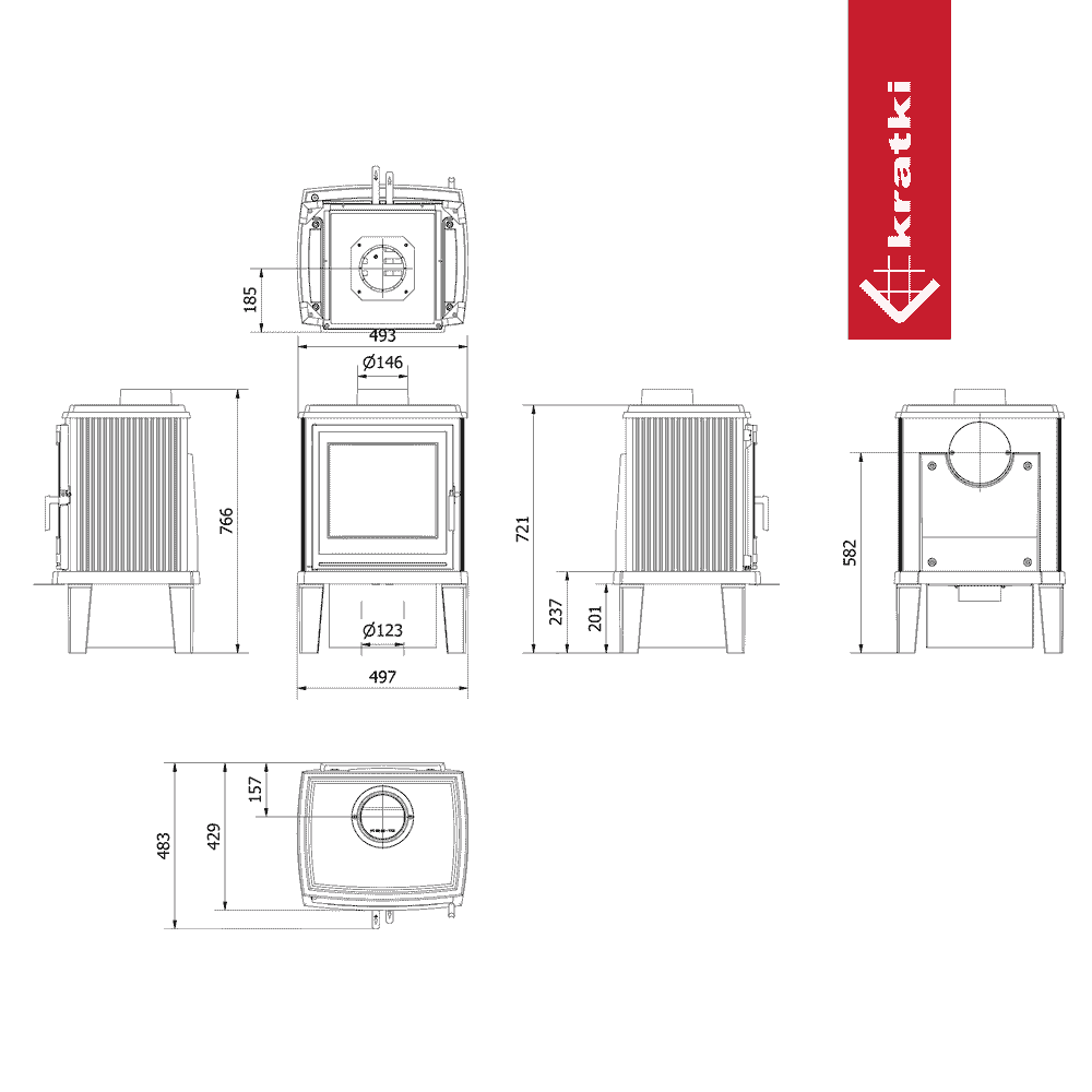 Piec na drewno KOZA KRATKI o mocy 6kW. Zakres mocy grzewczej to 3-9kW, co oznacza, że piec ogrzeje powierzchnię do 90m2. Piec na drewno spełnia kryteria EKOPROJEKTU, BImSchV 2, 7* Flamme Verte, posiada dolot powietrza z zewnątrz fi 125, zatem może być zamontowany w domach z rekuperacją. Klasa energetyczna: A. Linia KRATKI PRO to gwarancja jakości, potwierdzona 10 letnią gwarancją na urządzenie.