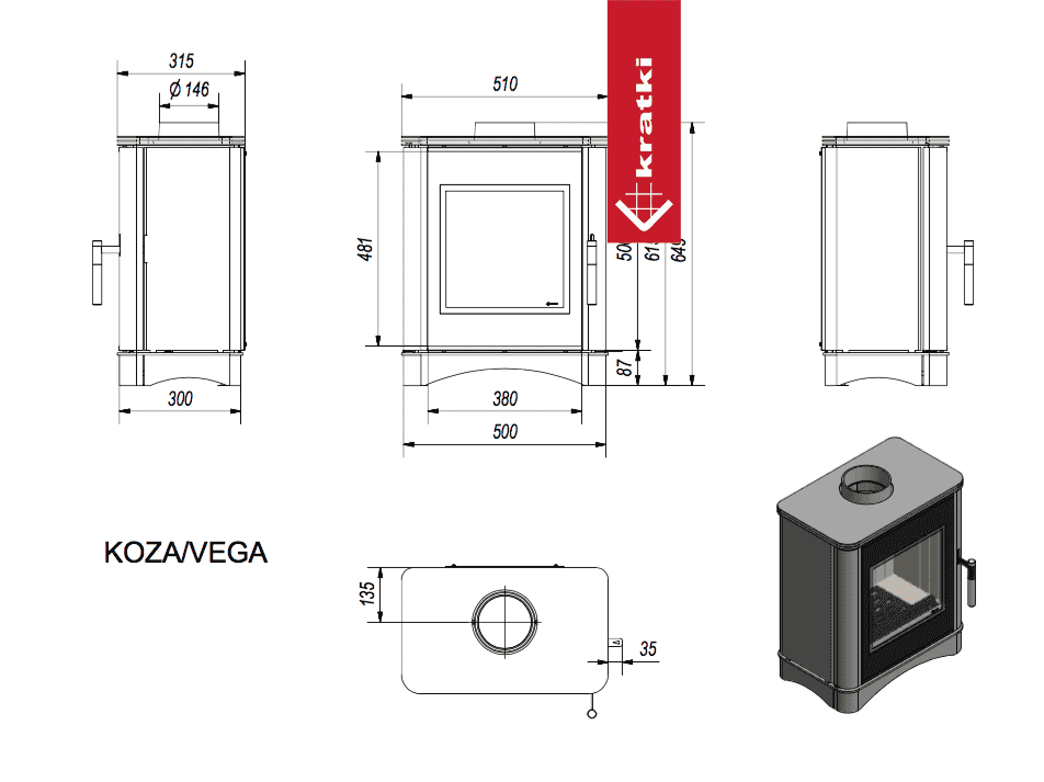 Piec na drewno KOZA KRATKI o mocy 6kW. Zakres mocy grzewczej to 3,5 - 8,0kW, co oznacza, że piec ogrzeje powierzchnię do 80m2. Piec na drewno spełnia kryteria EKOPROJEKTU, BImSchV 2. Klasa energetyczna: A. Piec posiada 5 lat gwarancji z możliwością jej przedłużenia do 8 lat.