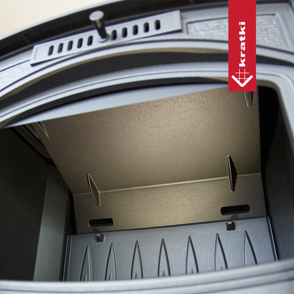 Piec posiada szyber, ruszt, szufladę popielnika, wbudowany deflektor.