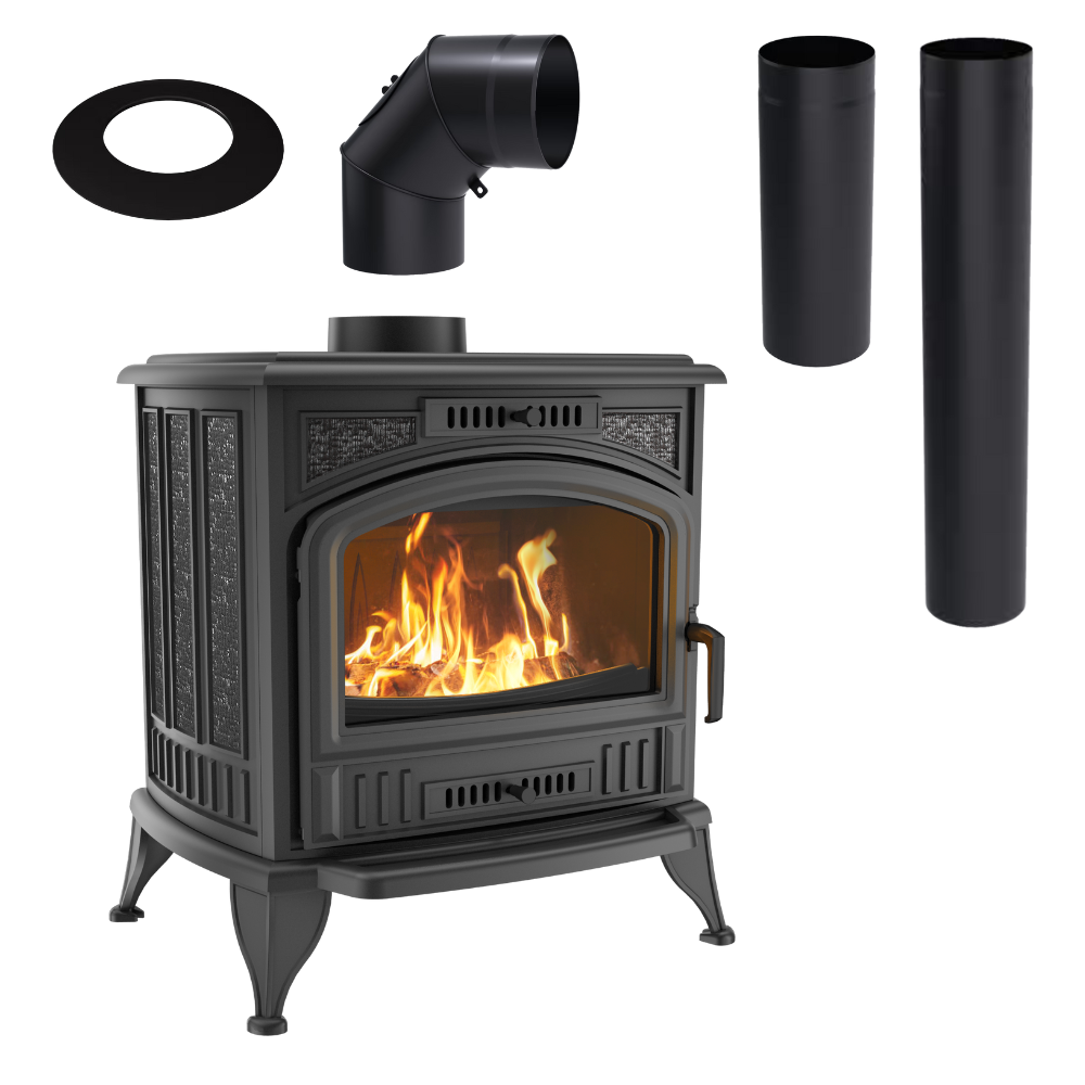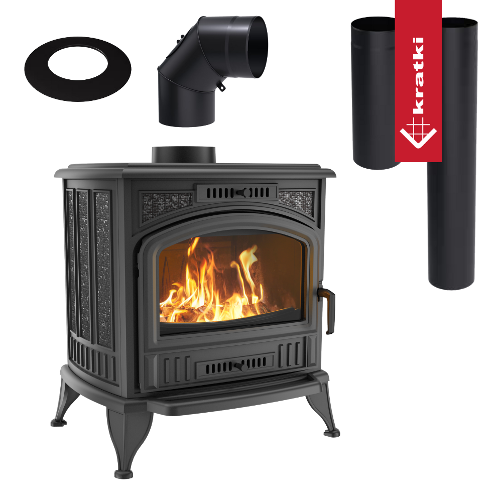 Piec na drewno żeliwny koza KRATKI K6 Ø130 8kW GOTOWY ZESTAW