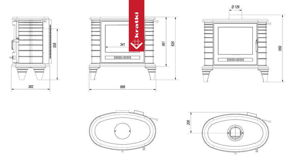 Piec wykonany jest z żeliwa. Ścianki paleniska o minimalnej grubości 8mm zapewniają solidność konstrukcji, odporność na uszkodzenia oraz długotrwałe utrzymanie ciepła.