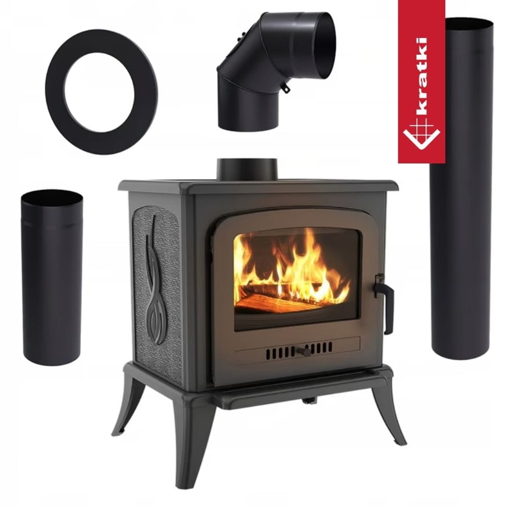 Piec na drewno żeliwny wolnostojący koza KRATKI K7 Ø 130 5 kW GOTOWY ZESTAW
