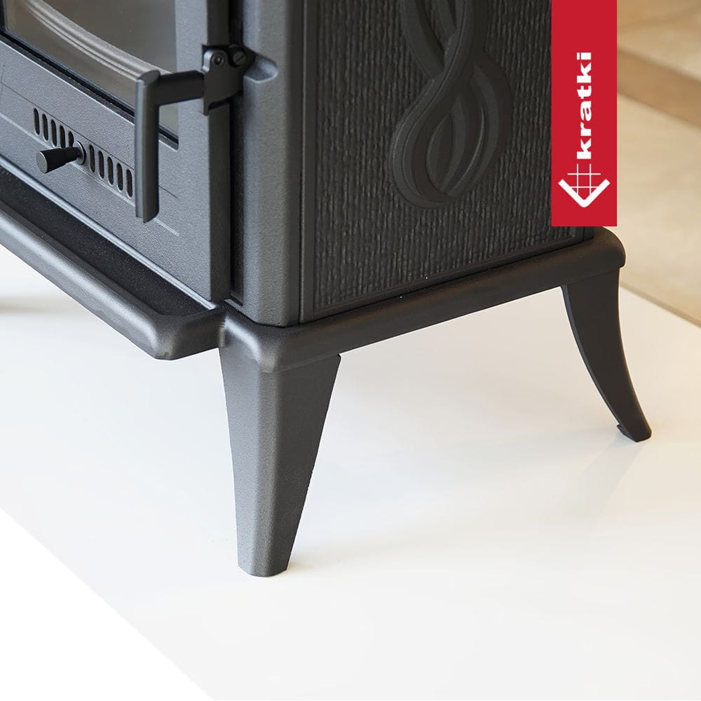 Ozdobne detale na drzwiczkach i bokach pieca, a także jego gięte nóżki, świetnie wpisują się w eleganckie, klasyczne wnętrza, dodając im ciepła i charakteru tradycyjnego paleniska.