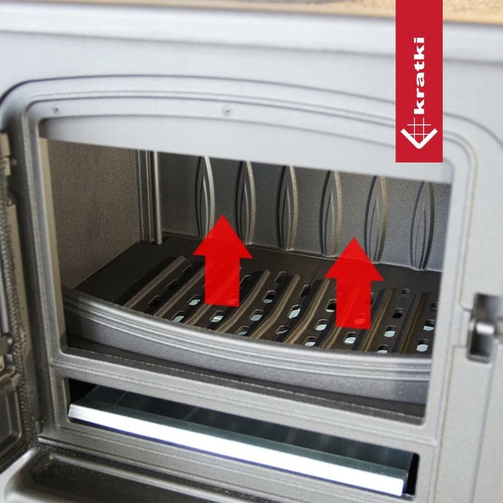 Solidny, żeliwny, wyjmowany ruszt oraz szuflada popielnika ułatwiają utrzymanie pieca w czystości.