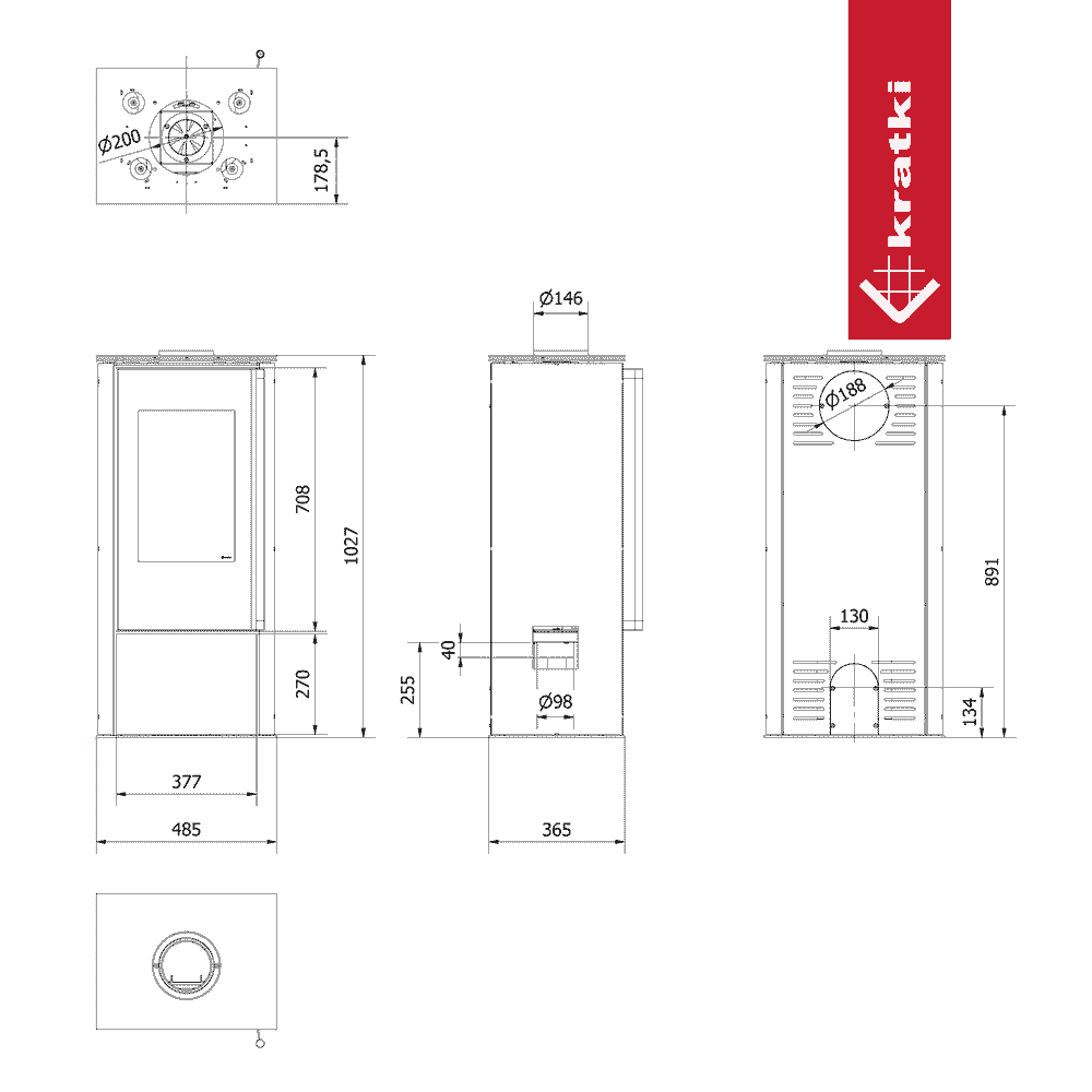 Piec stalowy HATI KRATKI o mocy 5.5kW. Piec na drewno spełnia kryteria EKOPROJEKTU, BImSchV 2, 7* Flamme Verte, posiada dolot powietrza z zewnątrz fi 125, zatem może być zamontowany w domach z rekuperacją. Klasa energetyczna: A. Linia KRATKI PRO to gwarancja jakości, potwierdzona 10 letnią gwarancją na urządzenie.