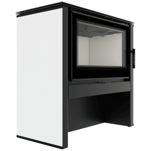 Pogłębiona komora spalania chroni przed rozsypywaniem się popiołu, co ułatwia uzupełnianie opału i utrzymanie czystości wokół kominka.