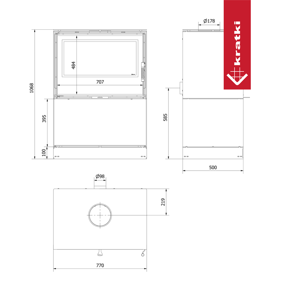 - Wyposażenie Dolot Powietrza, Ozdobna Szyba Typu Glass, Popielnik, Regulowane stopki M10, Wnęka na drewno, Wyłożenie Komory Spalania