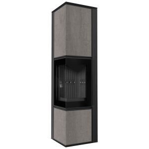 Piec stalowy KRATKI TORA/L 8 kW Ø 150 spiek NATURALI PIETRA DI SAVOIA GRIGIA BOCCIARDATA czarne wyłożenie