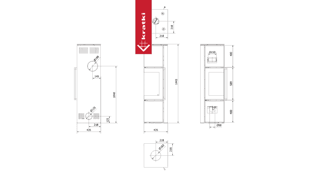 Piec stalowy KRATKI TORA/M 8 kW Ø 150 spiek Nero Assoluto czarne wyłożenie