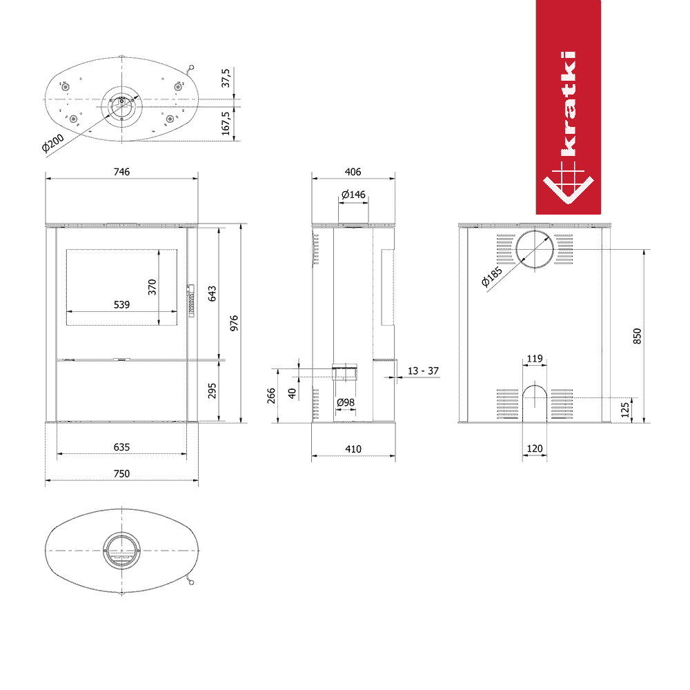 - Średnica wylotu spalin (mm) 150