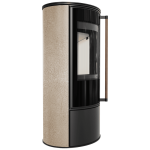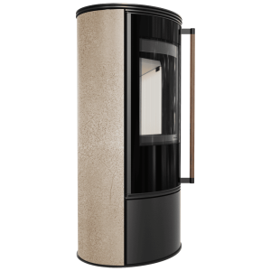 Piec wolnostojący KRATKI ERIK Ø 150 5,5 kW ozdobna ceramika akumulacyjna GOLD SATIN pokrywa stalowa; klamka z drewna egzotycznego Jatoba