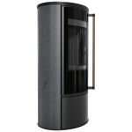 Piec wolnostojący KRATKI ERIK Ø 150 5,5 kW ozdobna ceramika akumulacyjna GRAFITE SATIN pokrywa stalowa; czarny termotec; klamka z drewna egzotycznego Jatoba