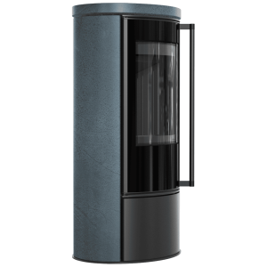 Piec wolnostojący KRATKI ERIK Ø 150 5,5 kW ozdobna ceramika akumulacyjna SERPENTINO pokrywa ceramiczna; czarny termotec