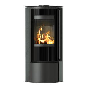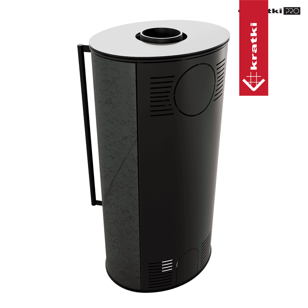 Piec wolnostojący KRATKI ERIK Ø 150 5,5 kW ozdobna ceramika akumulacyjna SERPENTINO pokrywa stalowa; czarny termotec