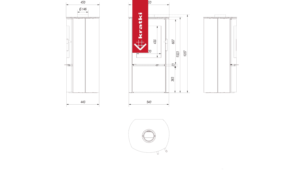 Możliwość zamontowania wylotu spalin z tyłu lub od góry pieca za pomocą przekręcenia odpowiedniej zaślepki.