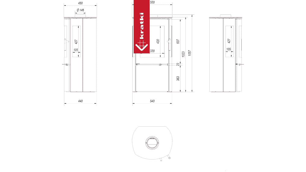 Piec wolnostojący KRATKI FALCON VIEW Ø 150 10 kW czarne wyłożenie