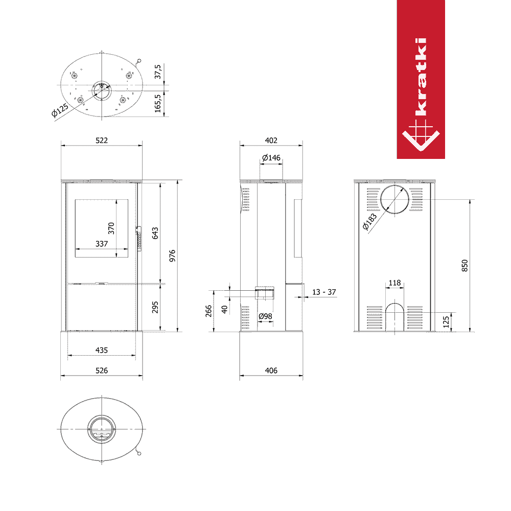 Piec wolnostojący KRATKI ROLLO Ø 150 7 kW czarne wyłożenie