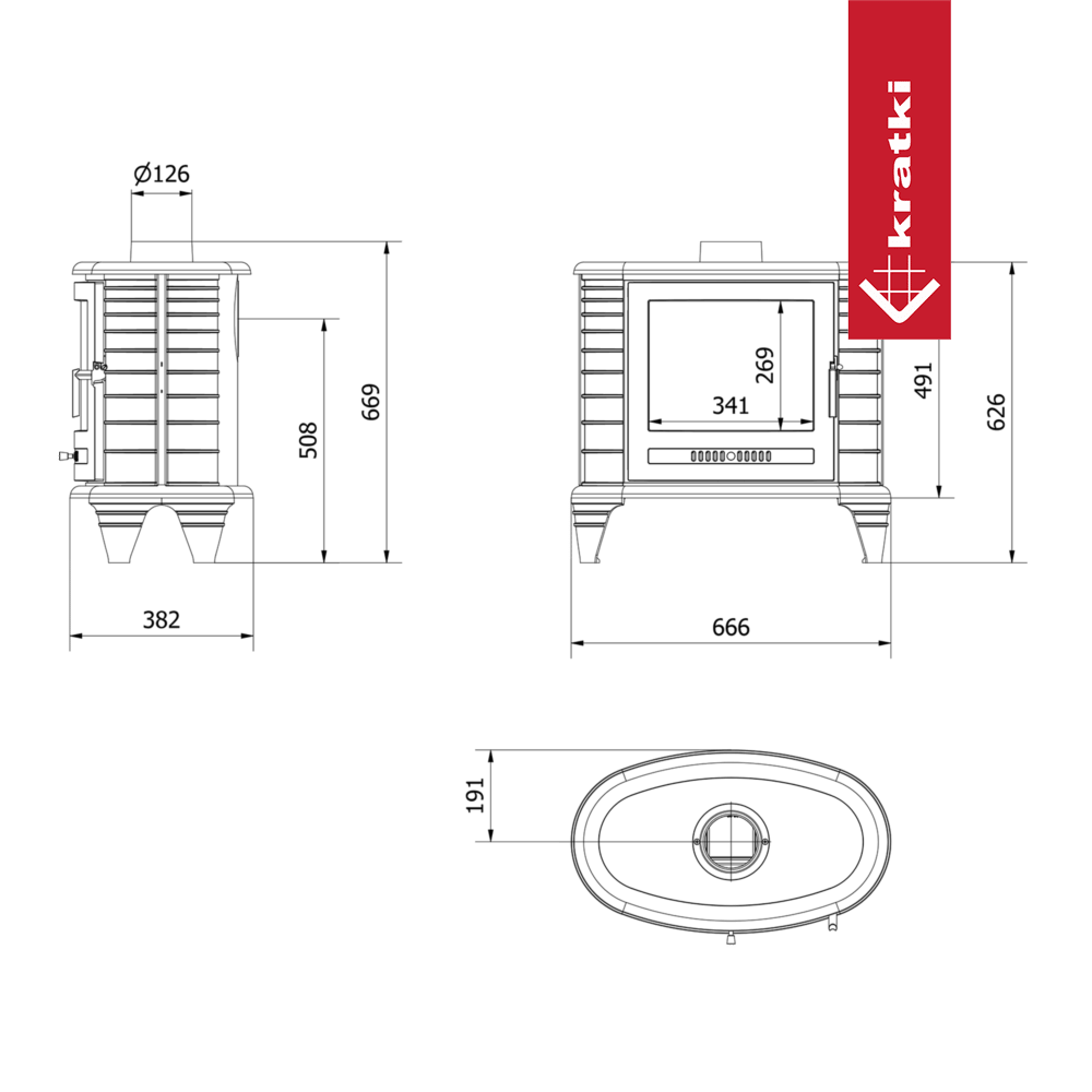 Piec wykonany jest z żeliwa. Ścianki paleniska o minimalnej grubości 8mm zapewniają solidność konstrukcji, odporność na uszkodzenia oraz długotrwałe utrzymanie ciepła.