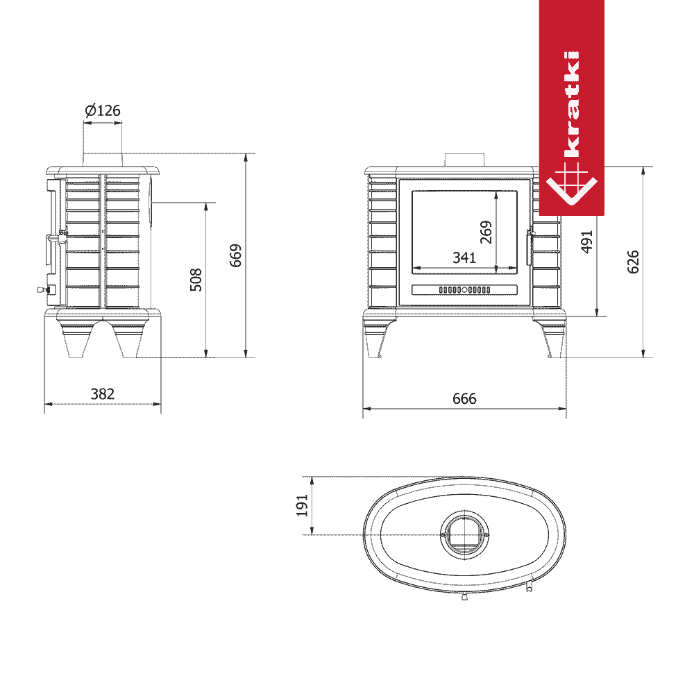 Piec wykonany jest z żeliwa. Ścianki paleniska o minimalnej grubości 8mm zapewniają solidność konstrukcji, odporność na uszkodzenia oraz długotrwałe utrzymanie ciepła.