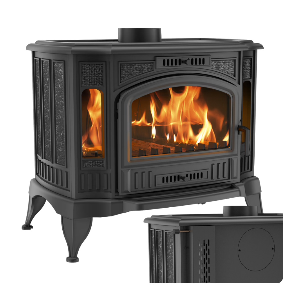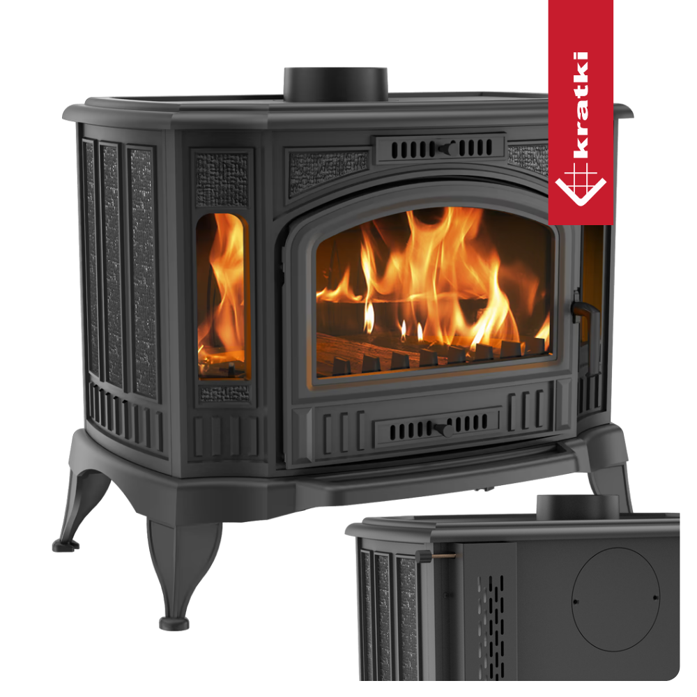 Piec posiada ruszt, szufladę popielnika i wbudowany deflektor.