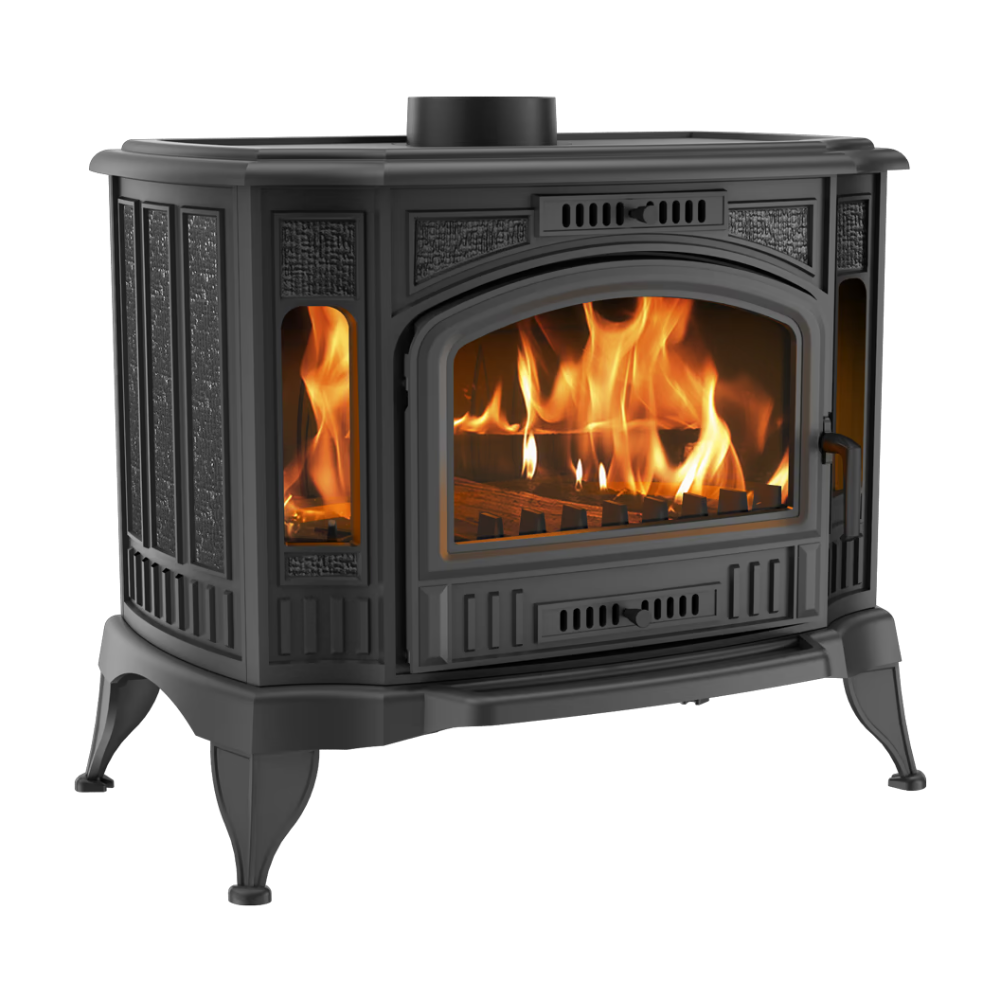Piec posiada ruszt, szufladę popielnika i wbudowany deflektor.