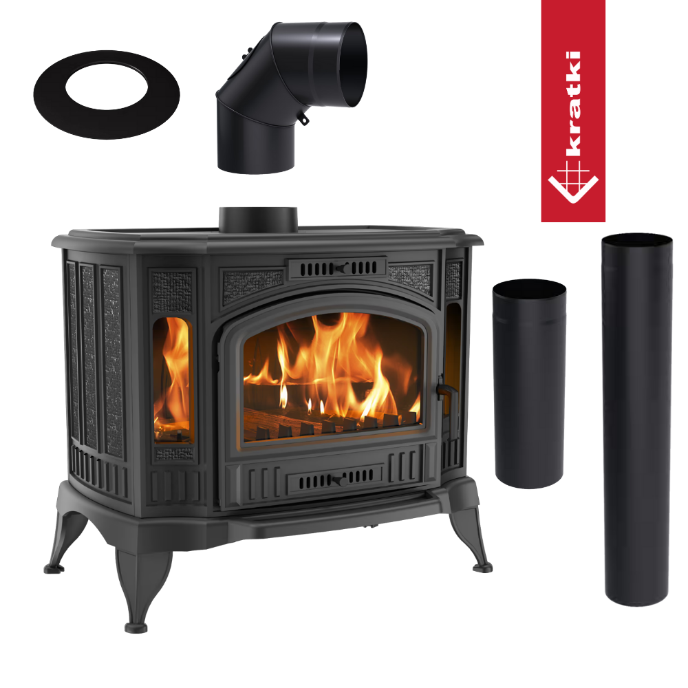 Piec żeliwny wolnostojący KRATKI koza K9 10kW Ø150 GOTOWY ZESTAW EKOPROJEKT