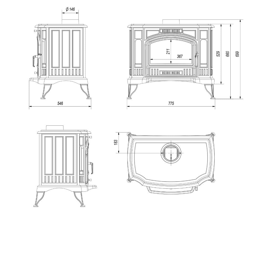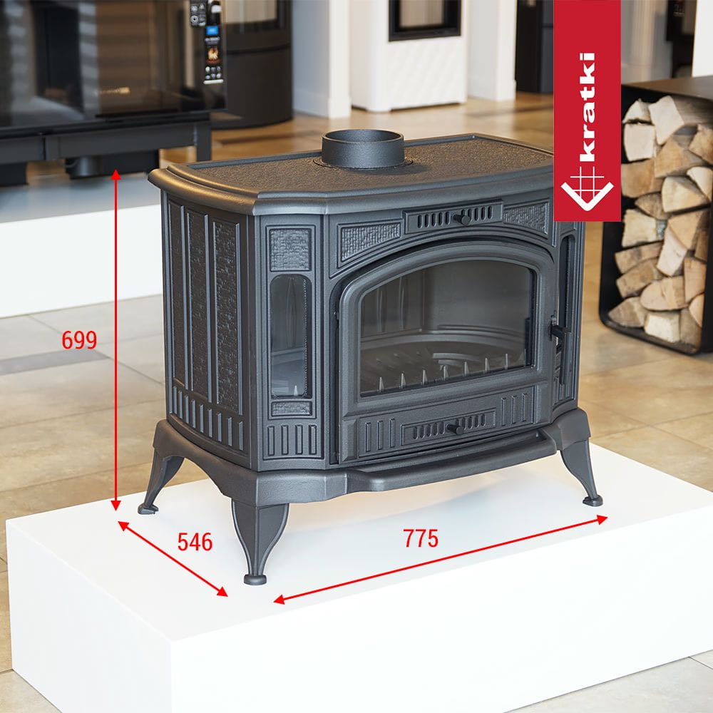 Piec posiada ruszt, szufladę popielnika i wbudowany deflektor.