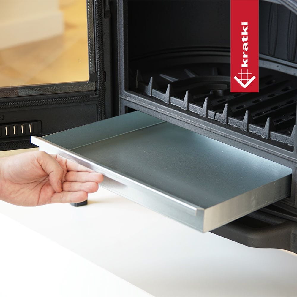 Szuflada popielnika ułatwia utrzymanie pieca w czystości. Można ją wyjąć całkowicie, aby opróżnić piec z popiołu.